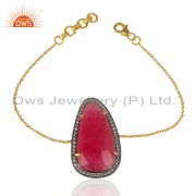 14K Gold Plated 925 Sterling Silver Red Aventurine CZ Gemstone Statement Ring