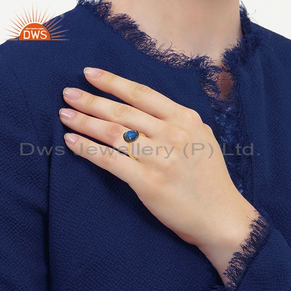 14K Solid Yellow Gold Dyed Chalcedony & Pave Set Diamond Stackable Ring