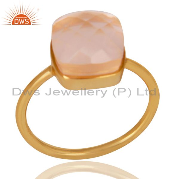 14K Yellow Gold Plated 925 Sterling Silver Handmade Rose Quartz Statement Ring