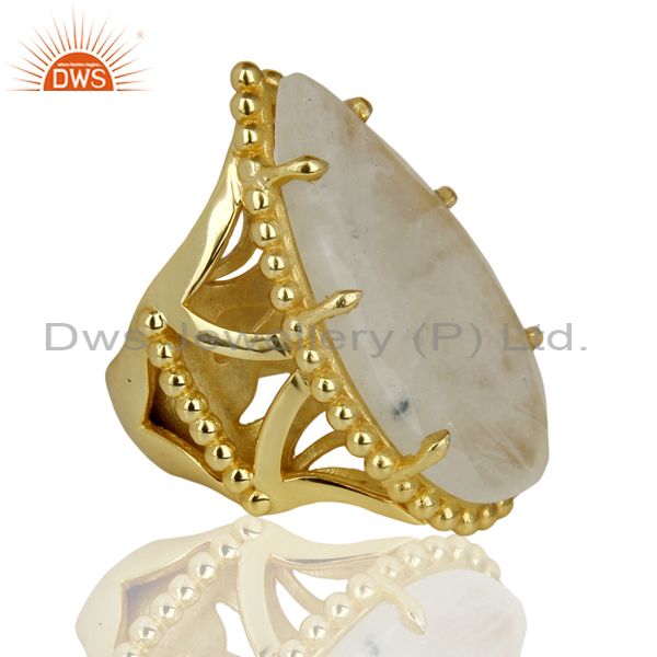 14K Yellow Gold Plated Handmade Rainbow Moonstone Gemstone Statement Ring