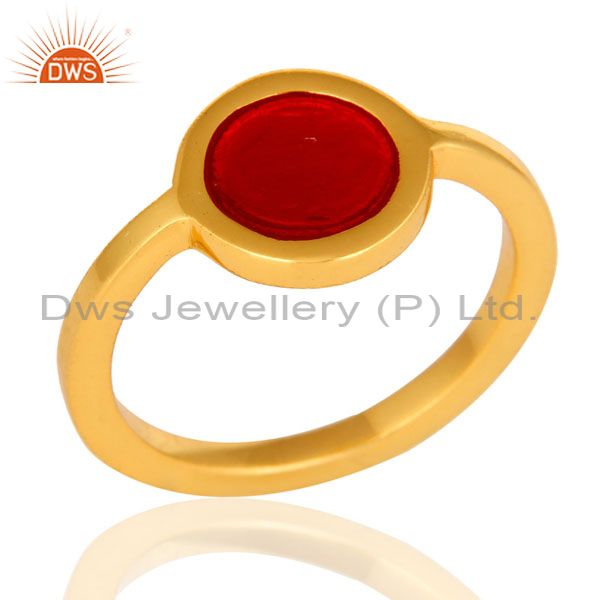14K Yellow Gold Plated Sterling Silver Red Enamel Fashion Satcking Ring