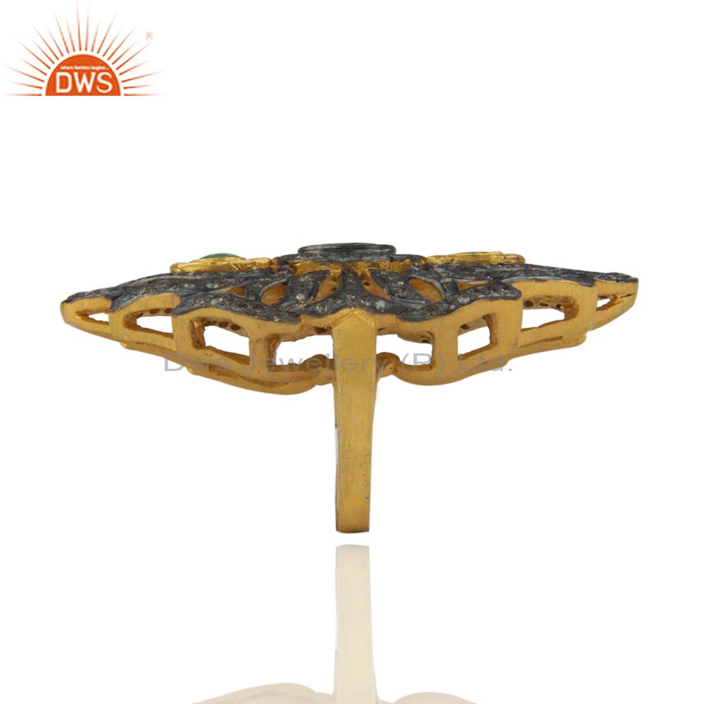 18K Gold Over 925 Sterling Silver Emerald Gemstone Pave Diamond Knuckle Ring