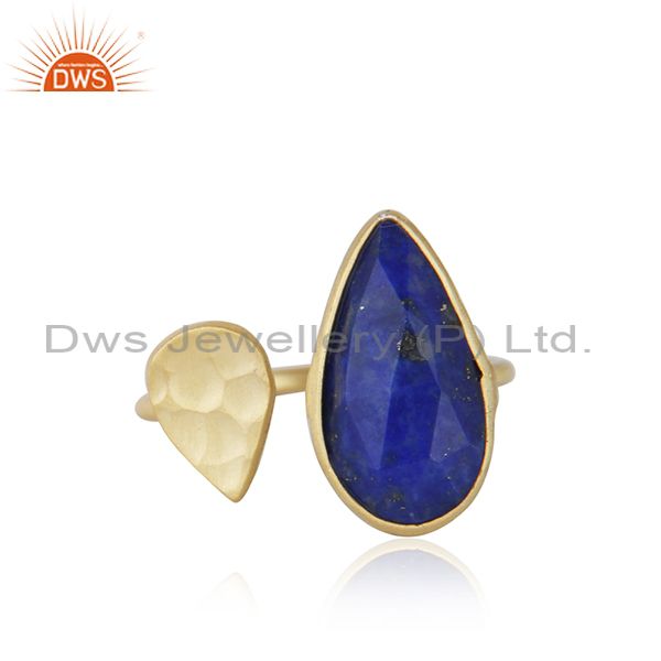 18k Gold Plated 925 Silver Natural Lapis Lazuli Gemstone Ring Jewelry