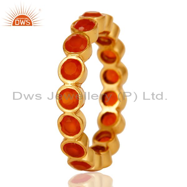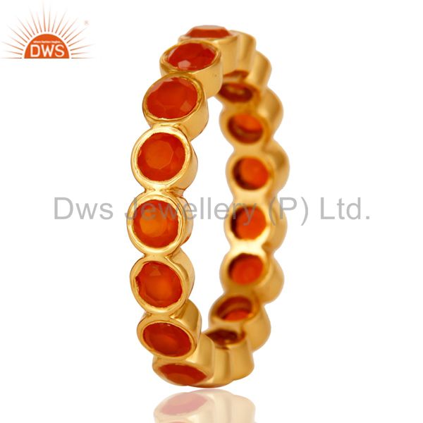 18K Gold Plated Sterling Silver Carnelian Ring Gemstone Band