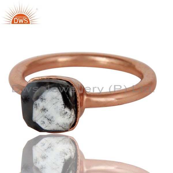 18K Rose Gold Plated Sterling Silver Dendritic Opal Gemstone Stackable Ring