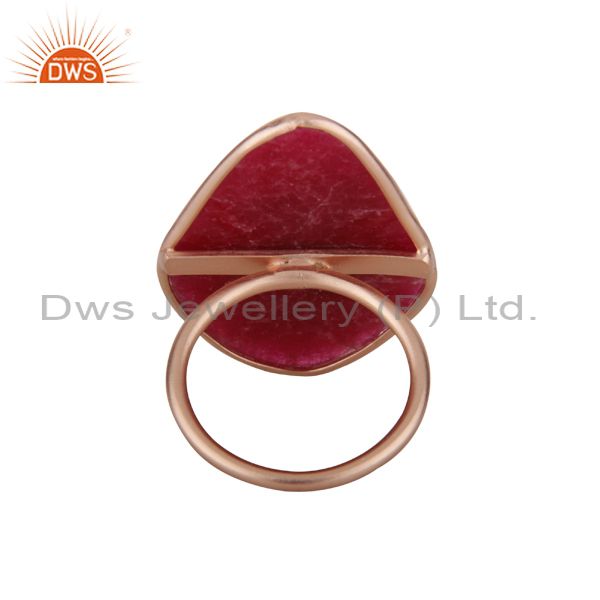 18K Rose Gold Plated Sterling Silver Dyed Ruby Gemstone Bezel Set Ring