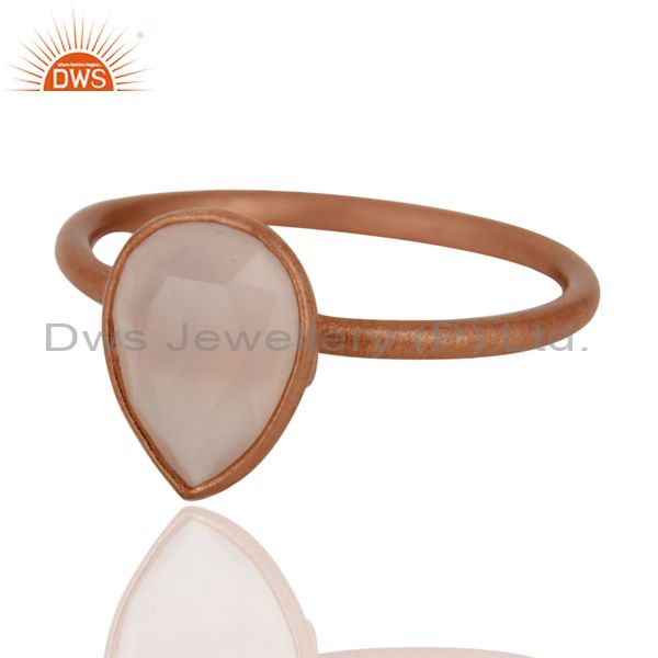 18K Rose Gold Plated Sterling Silver Rose Chalcedony Drop Stackable Ring