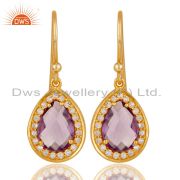 18k Yellow Gold Plated Sterling Silver Amethyst & White Topaz Stacking Ring