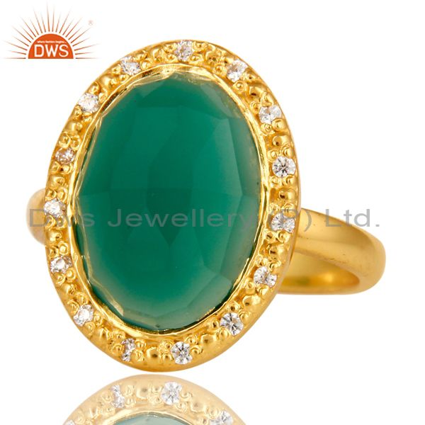 18K Yellow Gold Plated Sterling Silver Green Onyx And Cz Statement Ring