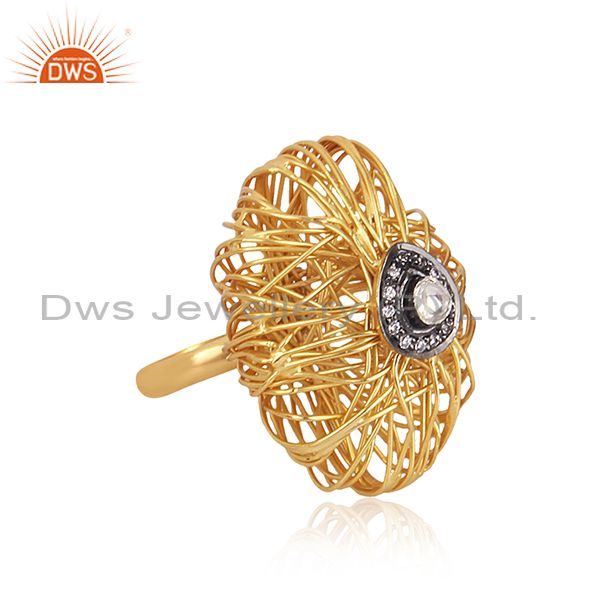18K Yellow Gold Plated Sterling Silver Wire Wrapped Next Design Cocktail Ring