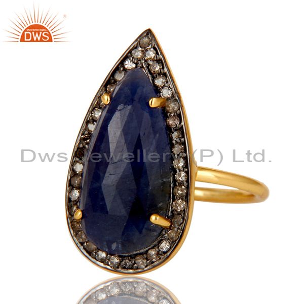 18K Yellow Gold Sterling Silver Pave Diamond And Blue Sapphire Statement Ring