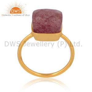 22K Gold Plated 925 Sterling Silver Checkered Smokey Topaz Statement Ring