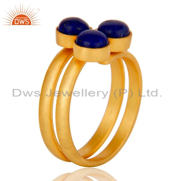 22K Yellow Gold Plated Handmade Lapis Lazuli Brass Statement Ring Jewellery