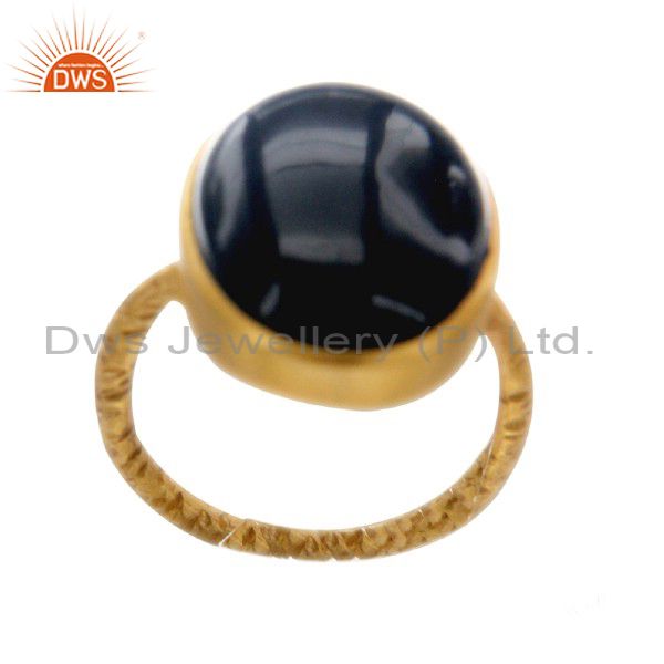 22K Yellow Gold Plated Sterling Silver Black Onyx Gemstone Statement Ring