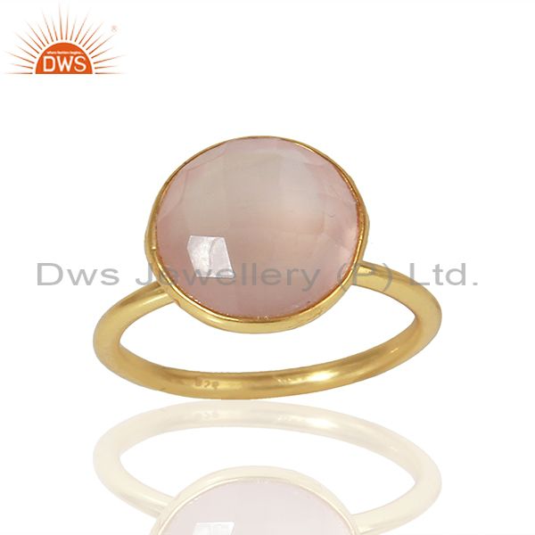 22K Yellow Gold Plated Sterling Silver Chalcedony Gemstone Stacking Ring