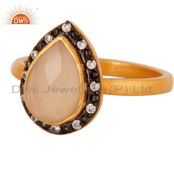 925 Sterling Silver 18K Gold Plated Rose Chalcedony Gemstone Ring With Zircon