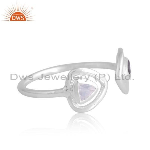Adjustable Silver Ring With Labradorite, Rainbow Moonstone