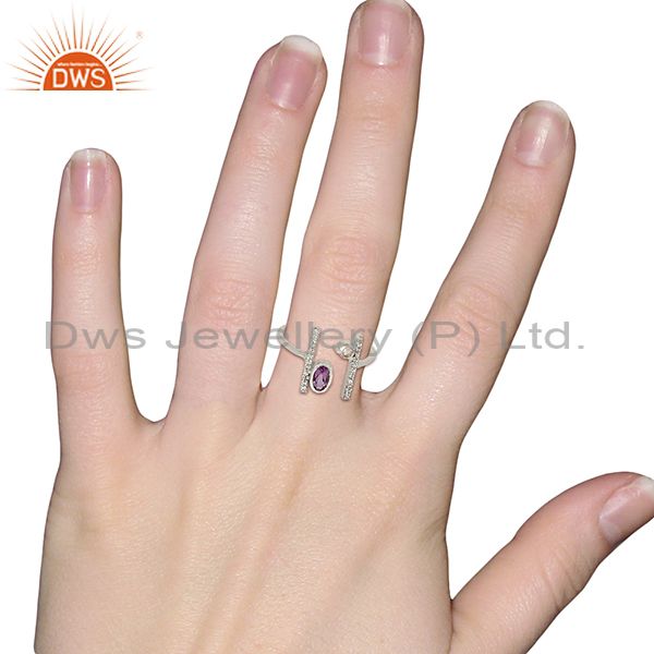 Amethyst Adjustable Parallel Bar White Rhodium Plated High Finish Silver Ring