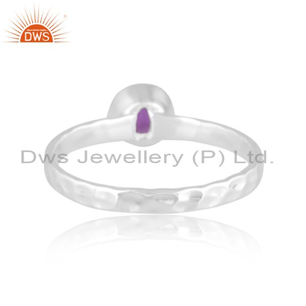 Amethyst Set Fine Sterling Silver Handhammered Textured Ring