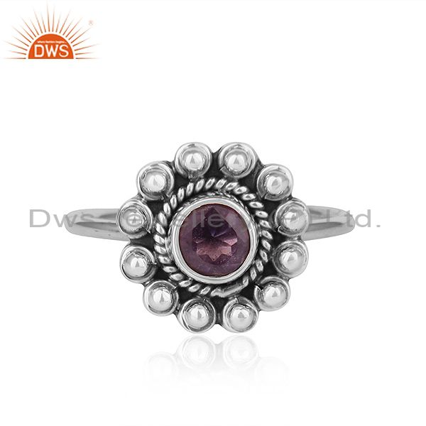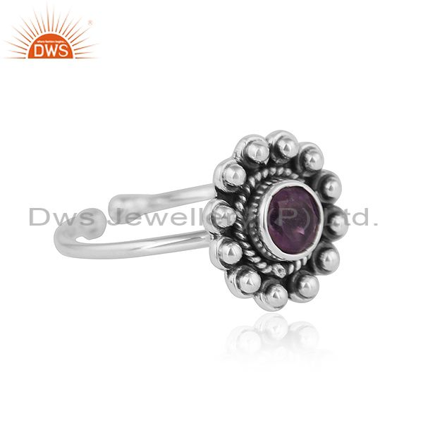 Antique Oxidized 92.5 Silver Designer Amethyst Gemstone Ring Jewelry