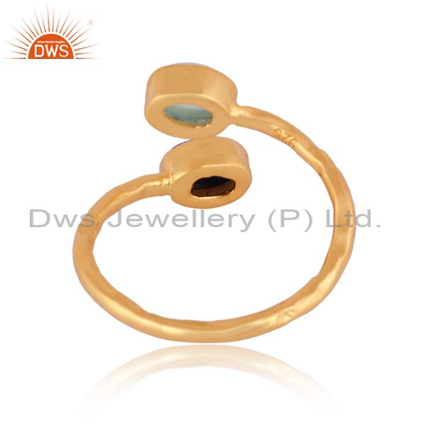 Aqua Chalcedony And Lapis Set Gold On 925 Silver Twist Ring
