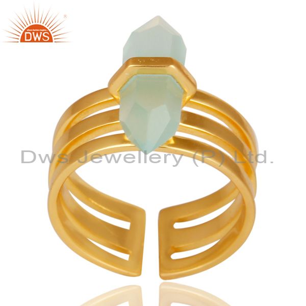 Aqua Chalcedony Wide Horn Adjustable 14K Gold Plated Sterling Silver Ring