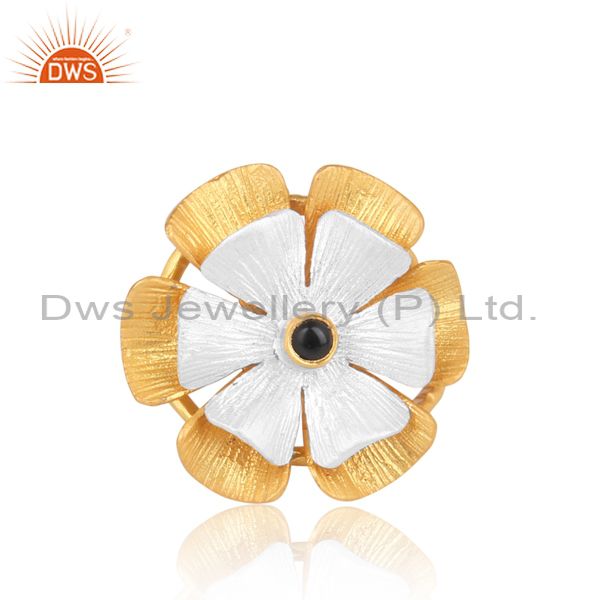 Black Onyx Set Gold Plated And Fine Silver Fancy Floral Ring