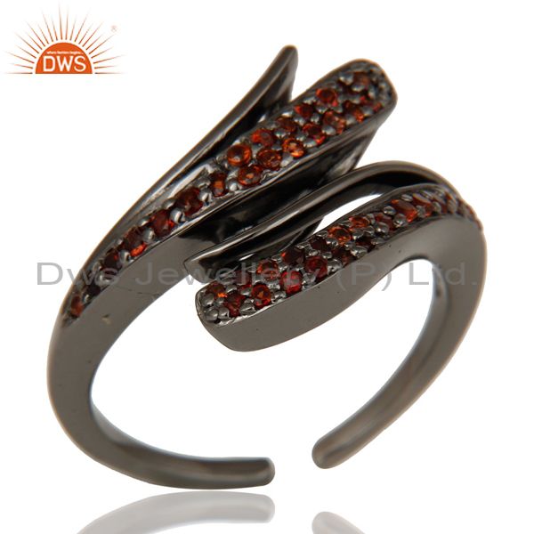 Black Oxidized 925 Sterling Silver Natural Garnet Midi Ring Gift Jewelry