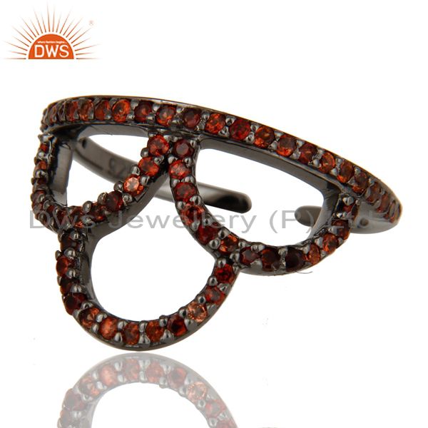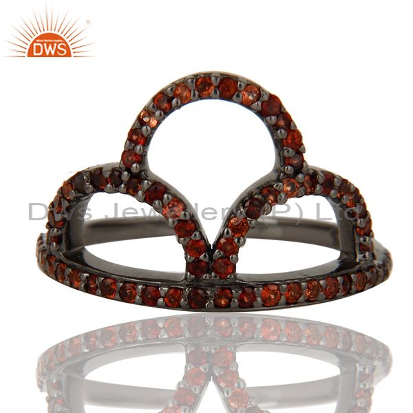 Black Oxidized Sterling Silver and Garnet Crown Design Midi Ring