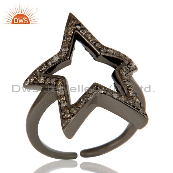 Black Oxidized Sterling Silver Diamond Rose Cut Designer Midi Ring Jewellery