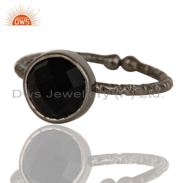Black Oxidized Sterling Silver Simple Setting Ring With Black Onyx