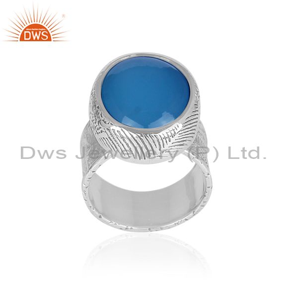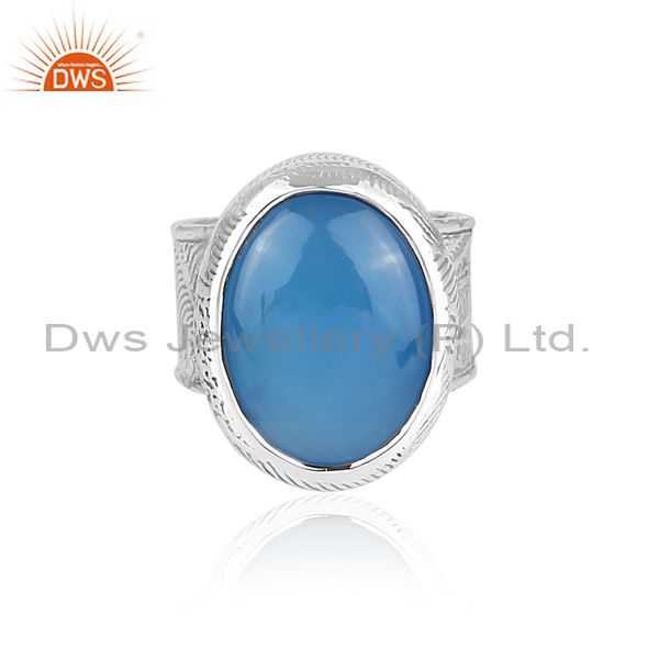 Blue Chalcedony Set Fine 925 Silver Handmade Designer Ring