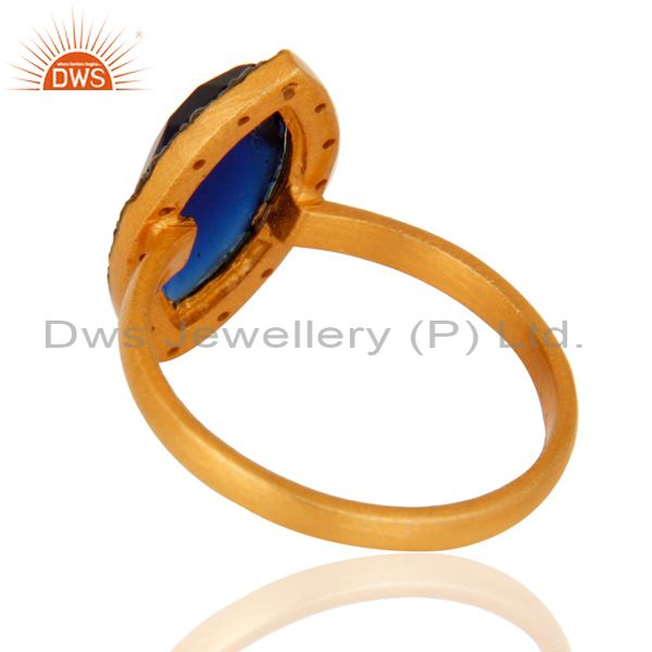 Blue Corundum Womens Fashion Ring With Cz Made In 14K Gold Over Sterling Silver
