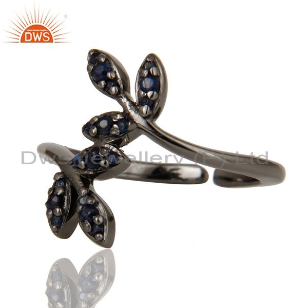 Blue Sapphire Black Oxidized Solid Sterling Silver Midi Ring