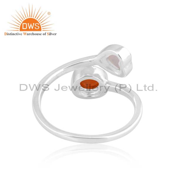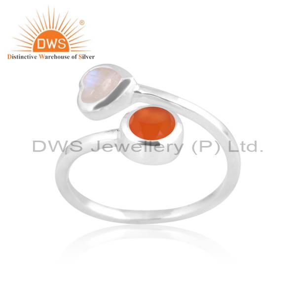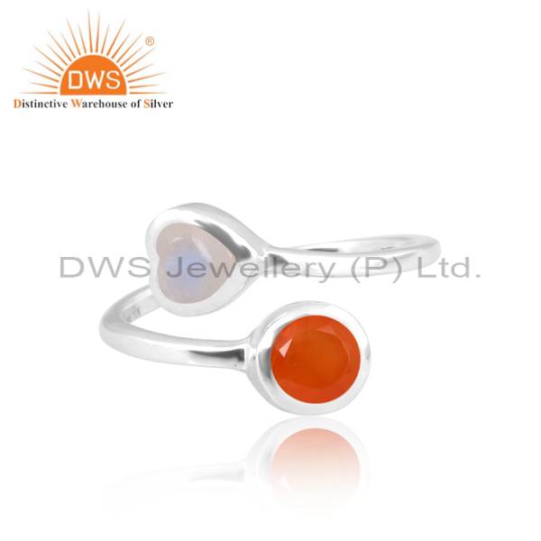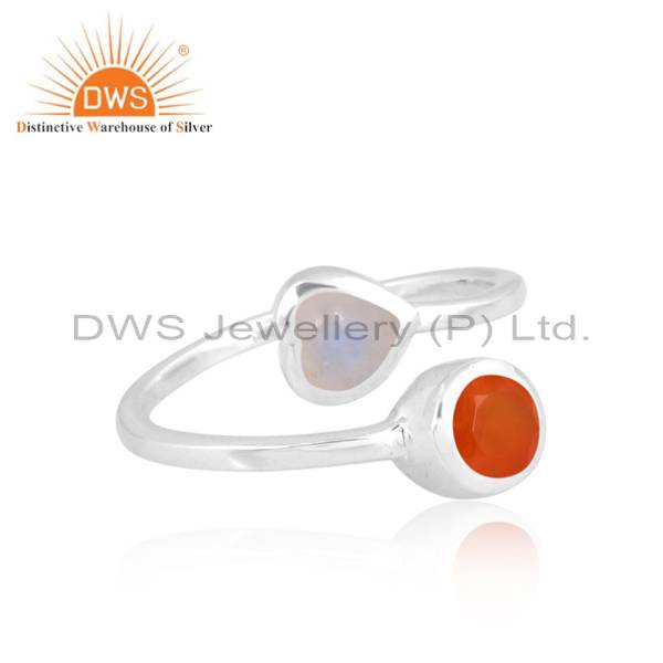 Carnelian And Rainbow Moonstone Heart Ring | Unique Gems Beauty