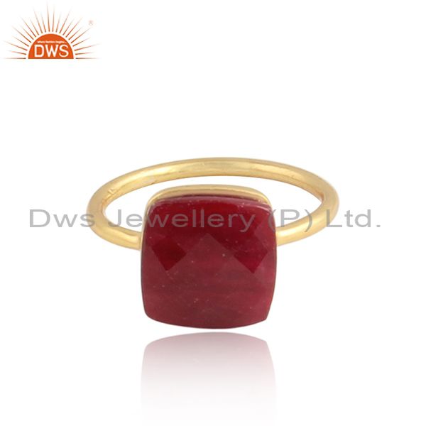 Corundum Ruby Gemstone Designer 18K Gold Plated Silver Rings