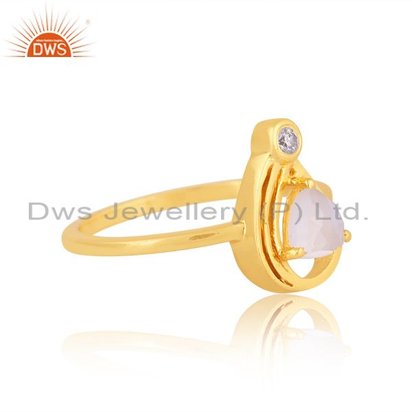 Cz And Trillion Cut Rainbow Moon Stone Gold On Silver Ring