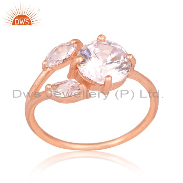 Cz Sterling Silver Rose Gold Plated Adjustable Floral Ring
