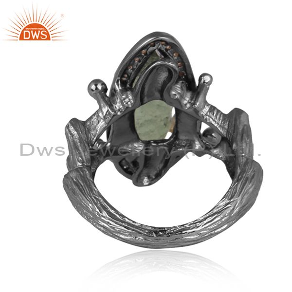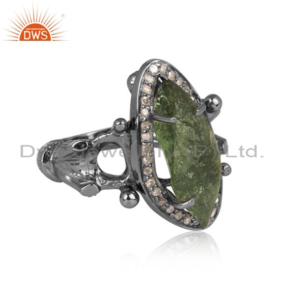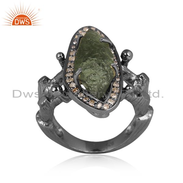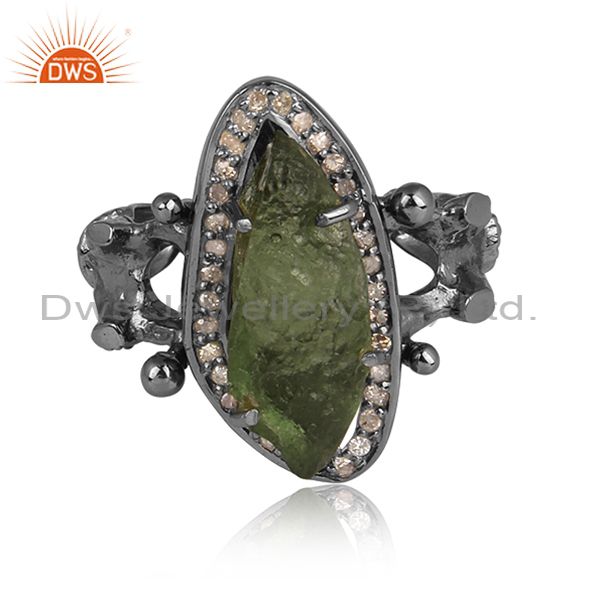Diamond And Moldavite Set Black On 925 Silver Classic Ring