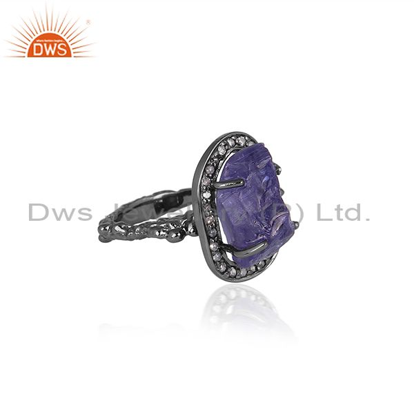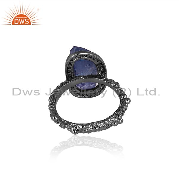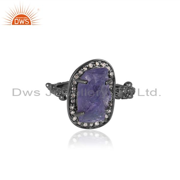 Diamond And Tanzanite Black On Silver Abstract Design Ring