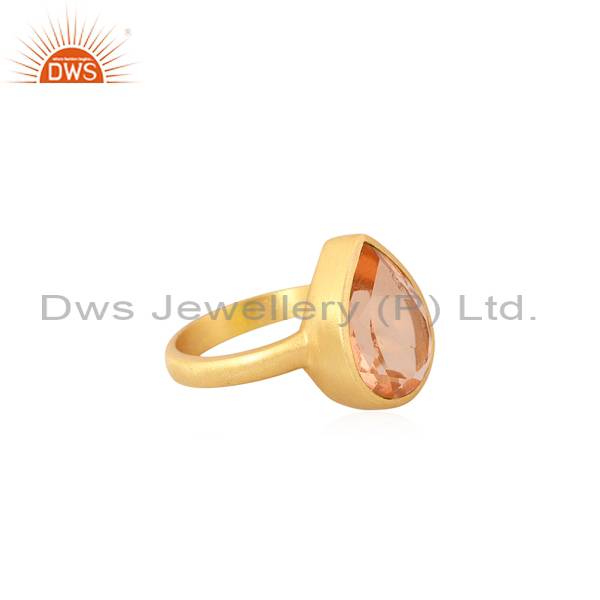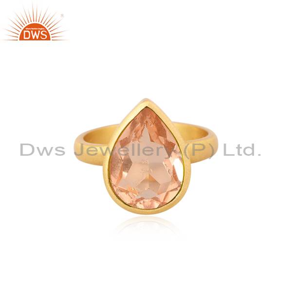 Doublet Morganite Quartz Brass Ring - Pear Cut