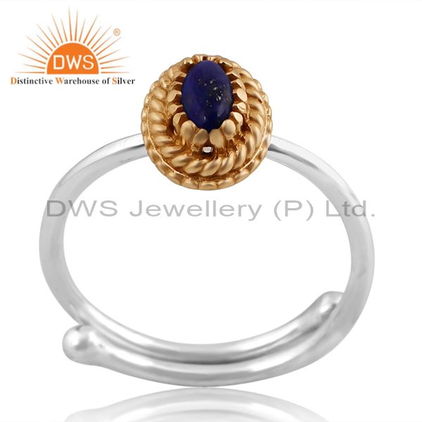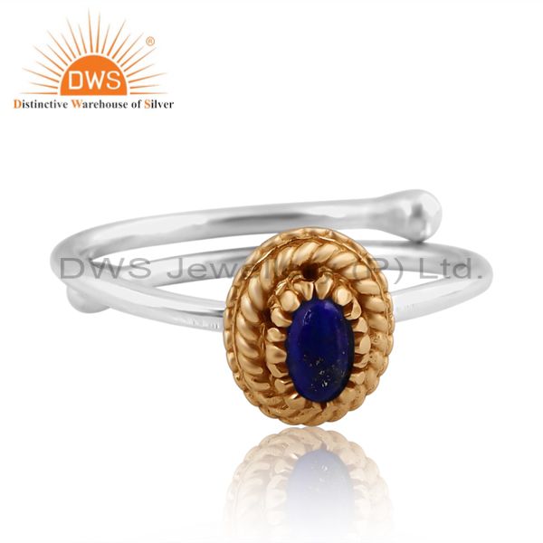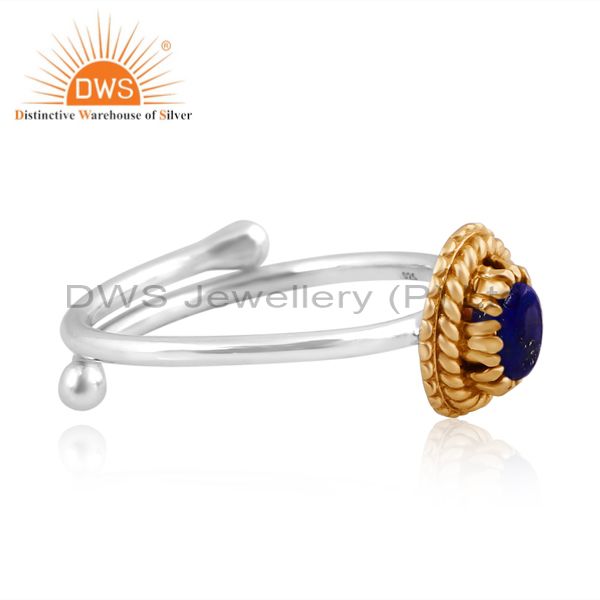 Elegant Lapis Lazuli Silver Ring With Brass Accent