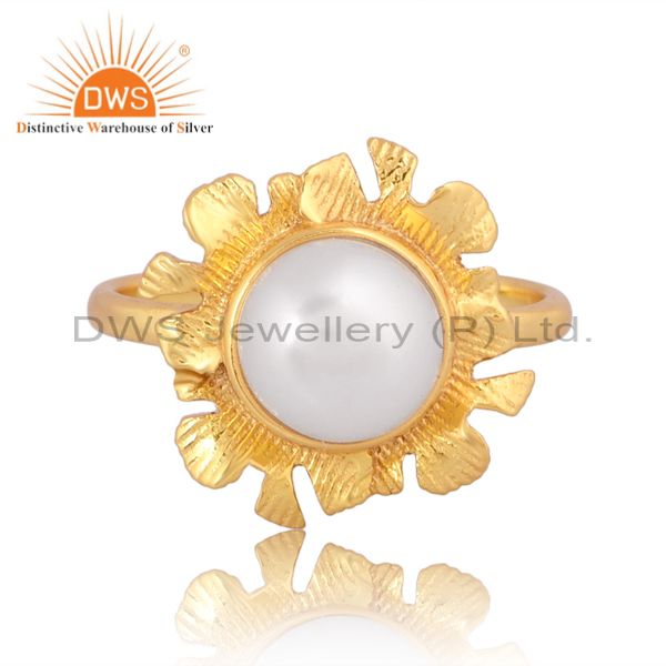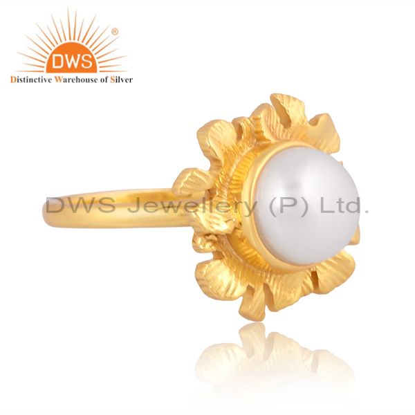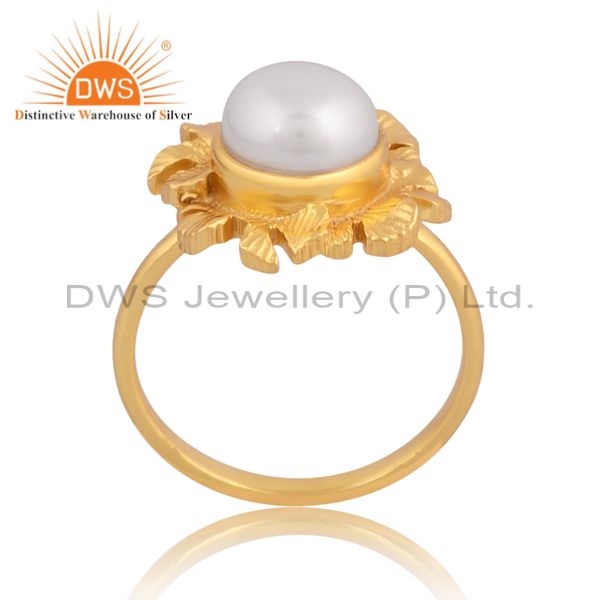 Elegant Pearl Gold-Plated Silver Ring For Women