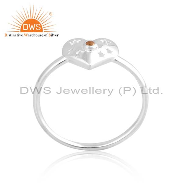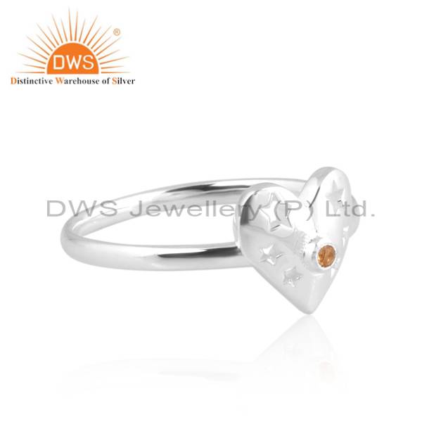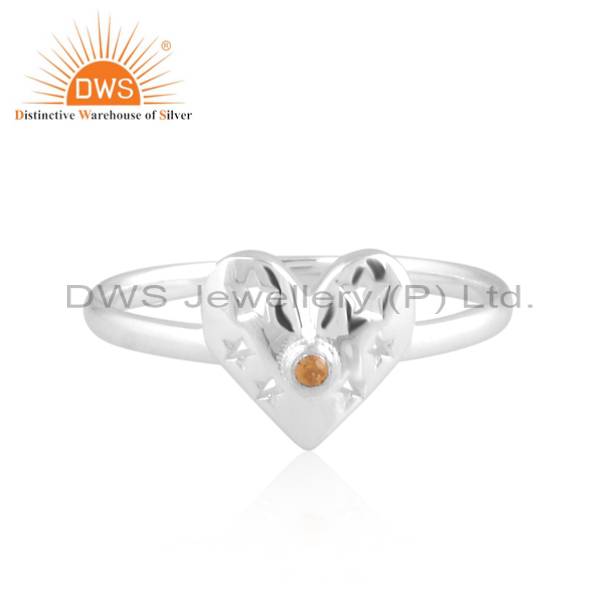 Elegant Round-Cut Citrine Ring With Heart And Star Accents