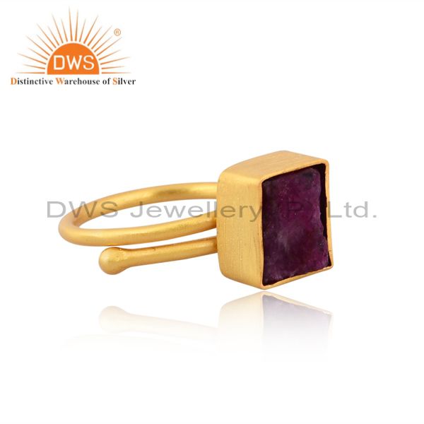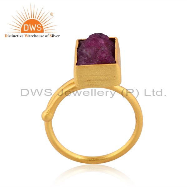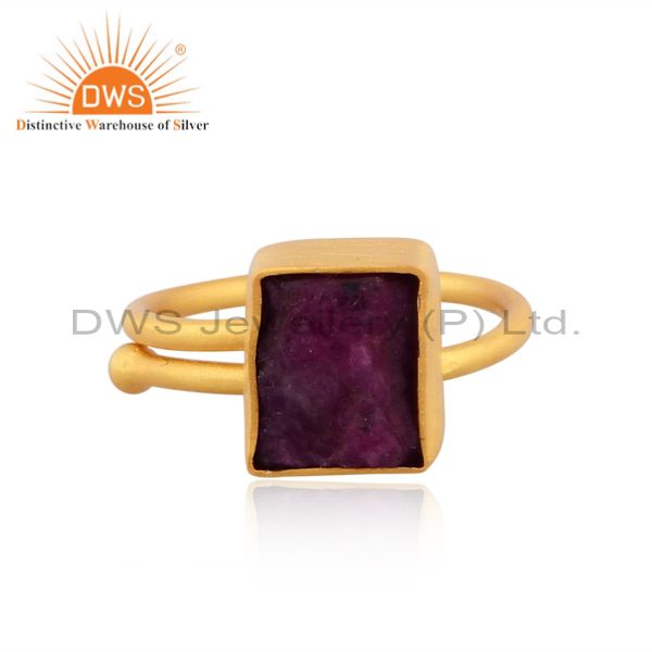 Elegant Ruby Gold-Plated Silver Ring For Girls