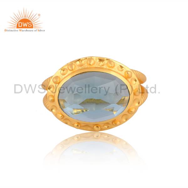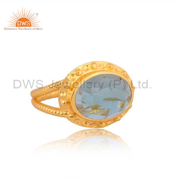 Elegant Swiss Blue Topaz Ring In Brass - Shop Now!