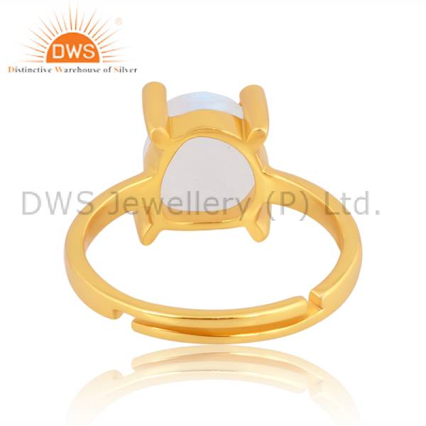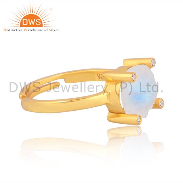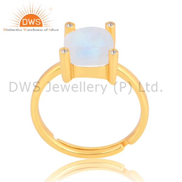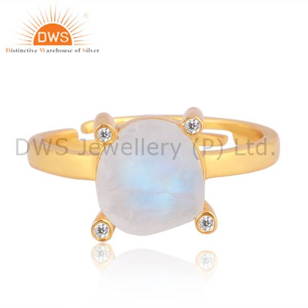 Elegant White Topaz And Rainbow Moonstone Gold-Plated Ring