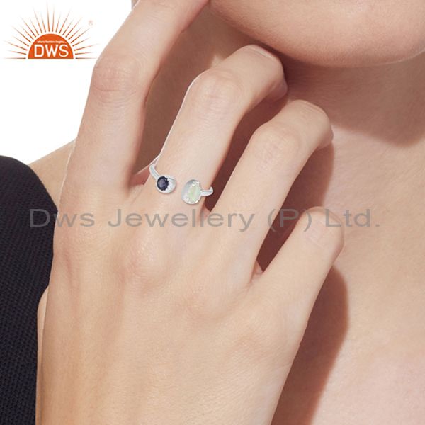ETHIOPIAN OPAL CABUSHION and Iolite silver adjustable ring