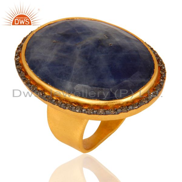 Faceted Natural Blue Sapphire Diamond Pave Set 925 Sterling Silver Ring For Lady