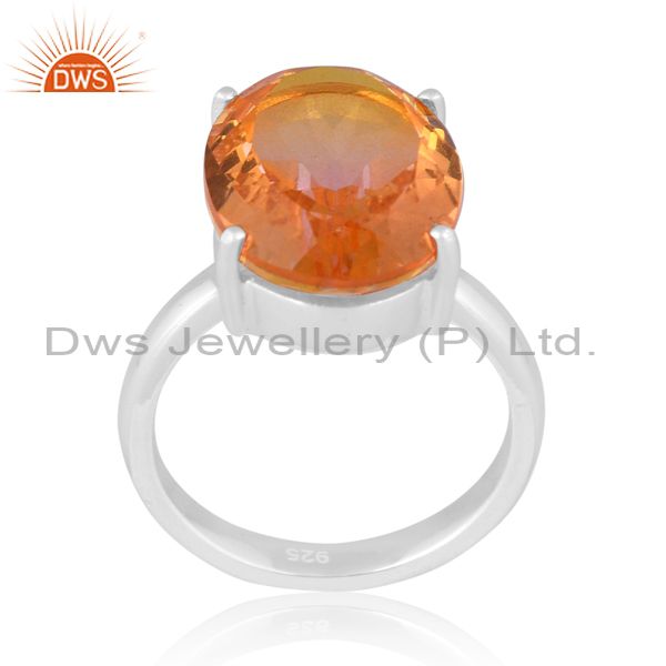 Fine 925 Silver Bio Morganite Doublet Quartz Set Design Ring